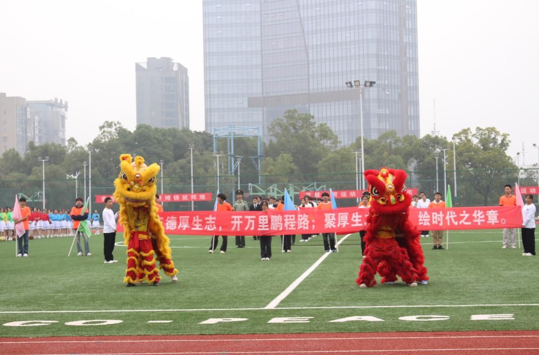 图为厚生国际教育学院运动会开幕式舞狮表演