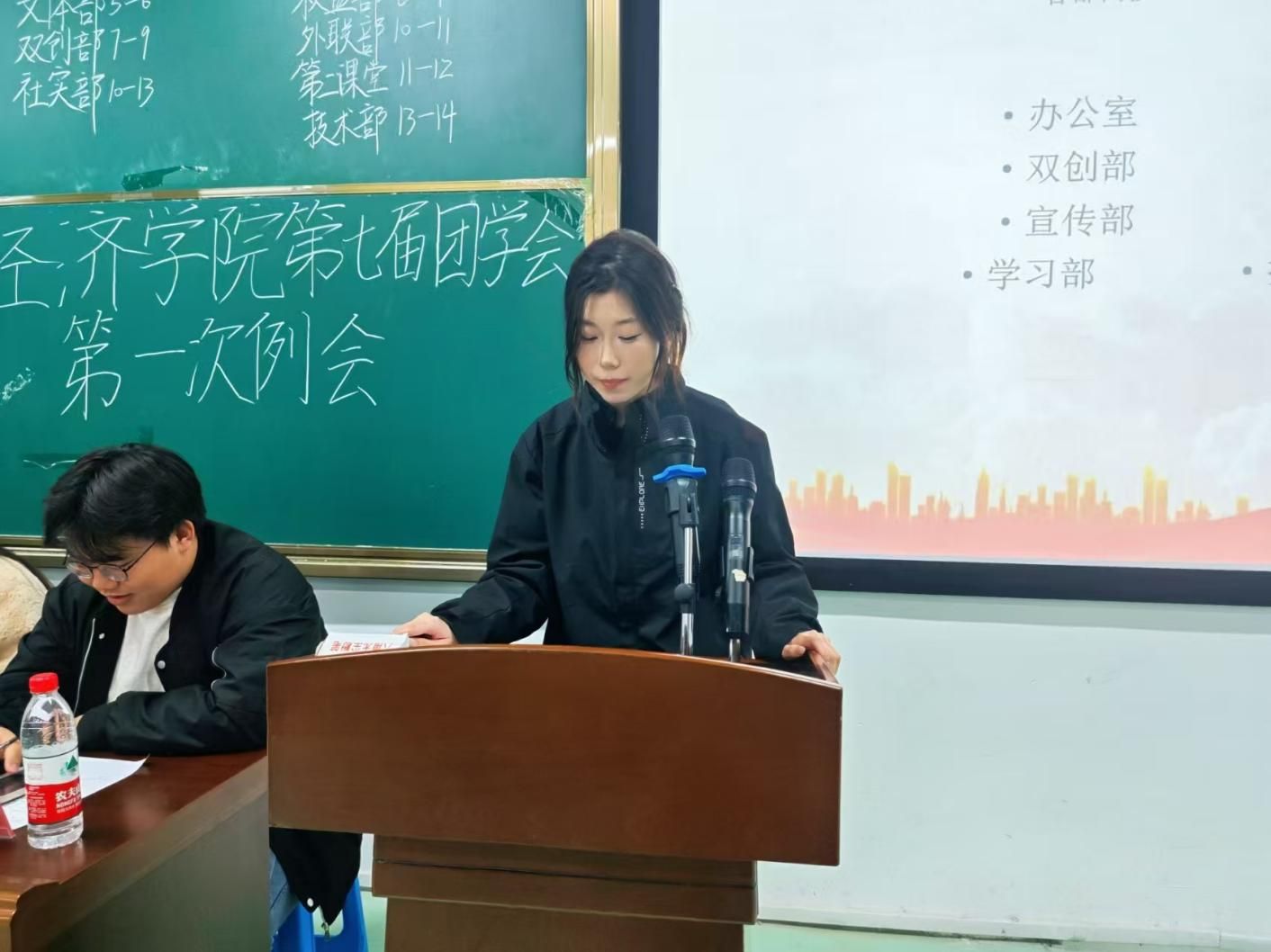 会议伊始,经济学院团总支书记宋赛男书记热烈欢迎经济学院团学会新成员的加入,同时表达对新一届团学会工作的期望。她指出团学会成员需将服务放在心上,主动担当作为,既要把活动做活让观众成为主体,也要凝聚团队真情、关注彼此成长需求,在实践中实现个人能力与团队价值的双重提升。