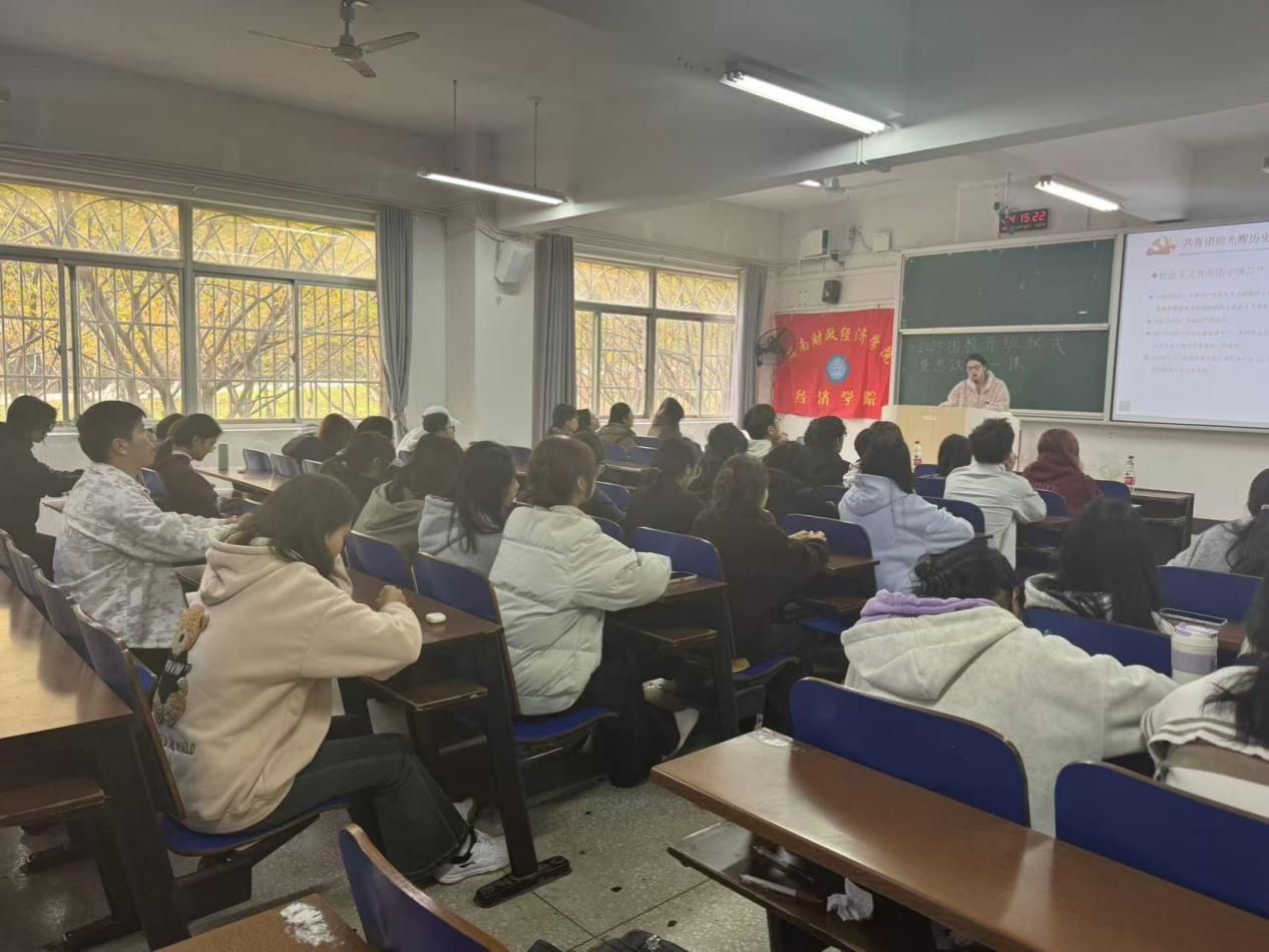 经济学院团总支书记宋赛男老师以《新时代合格共青团员——努力成为堪当民族复兴重任的时代新人》为题给学员授思政第一课。课上,宋赛男老师以“共青团的光辉历史”“团的基本知识”“团员的权利与义务”“青年,你为什么入团”四部分展开授课,以自己的亲身经历深入浅出进行讲解,为学员筑牢思想根基,助力青年明确方向,以更昂扬姿态投身学习与实践。