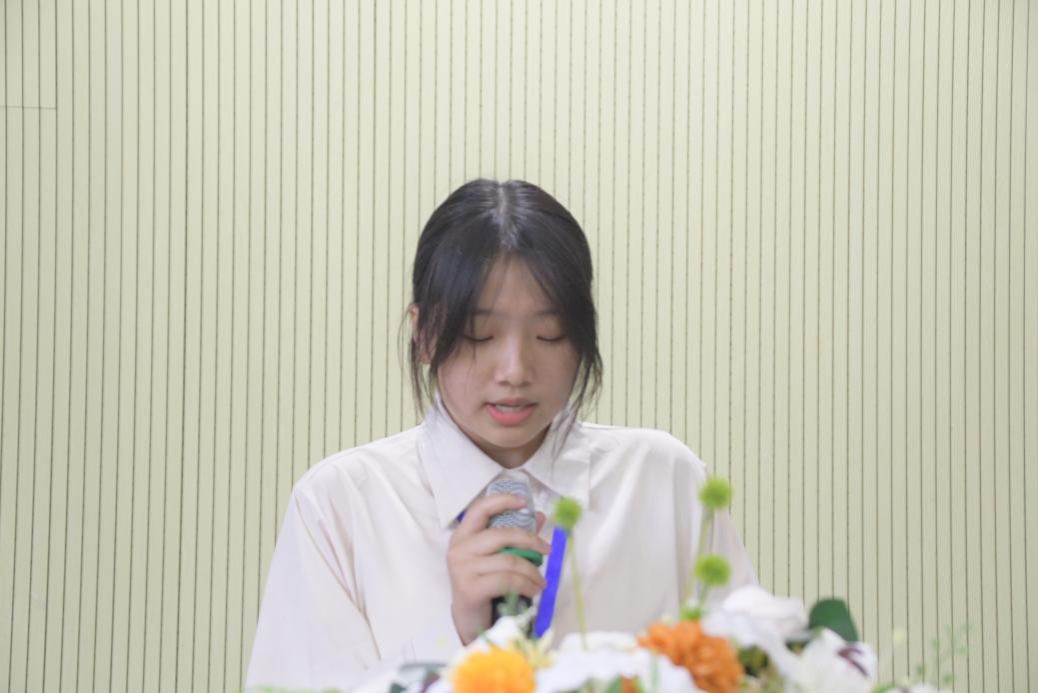 (图为校团委第二课堂管理部副部长柳璐怡作情况介绍)