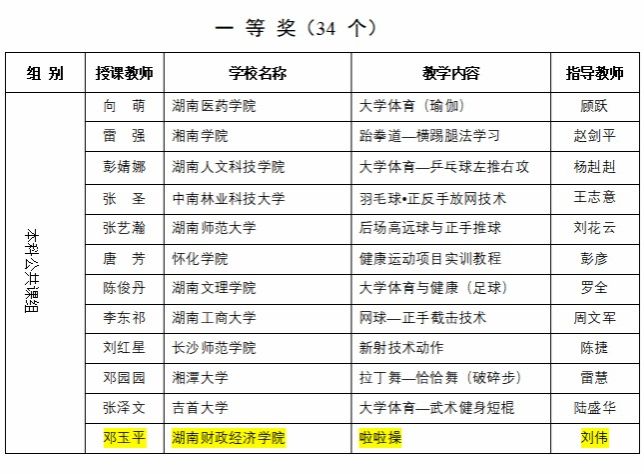 喜报,我院于湖南省第七届普通高等学校青年体育教师课堂教学竞赛中斩获佳绩!其中,邓玉平老师的《啦啦操》获本科公共课组一等奖(指导老师刘伟);彭莹璐老师的《体育舞蹈》获专业术科组一等奖(指导老师宫梦婷);易钰杰老师的《体育经济-奥运的经济效益》获专业理论组二等奖(指导老师宫梦婷);永利获“优秀组织奖”。