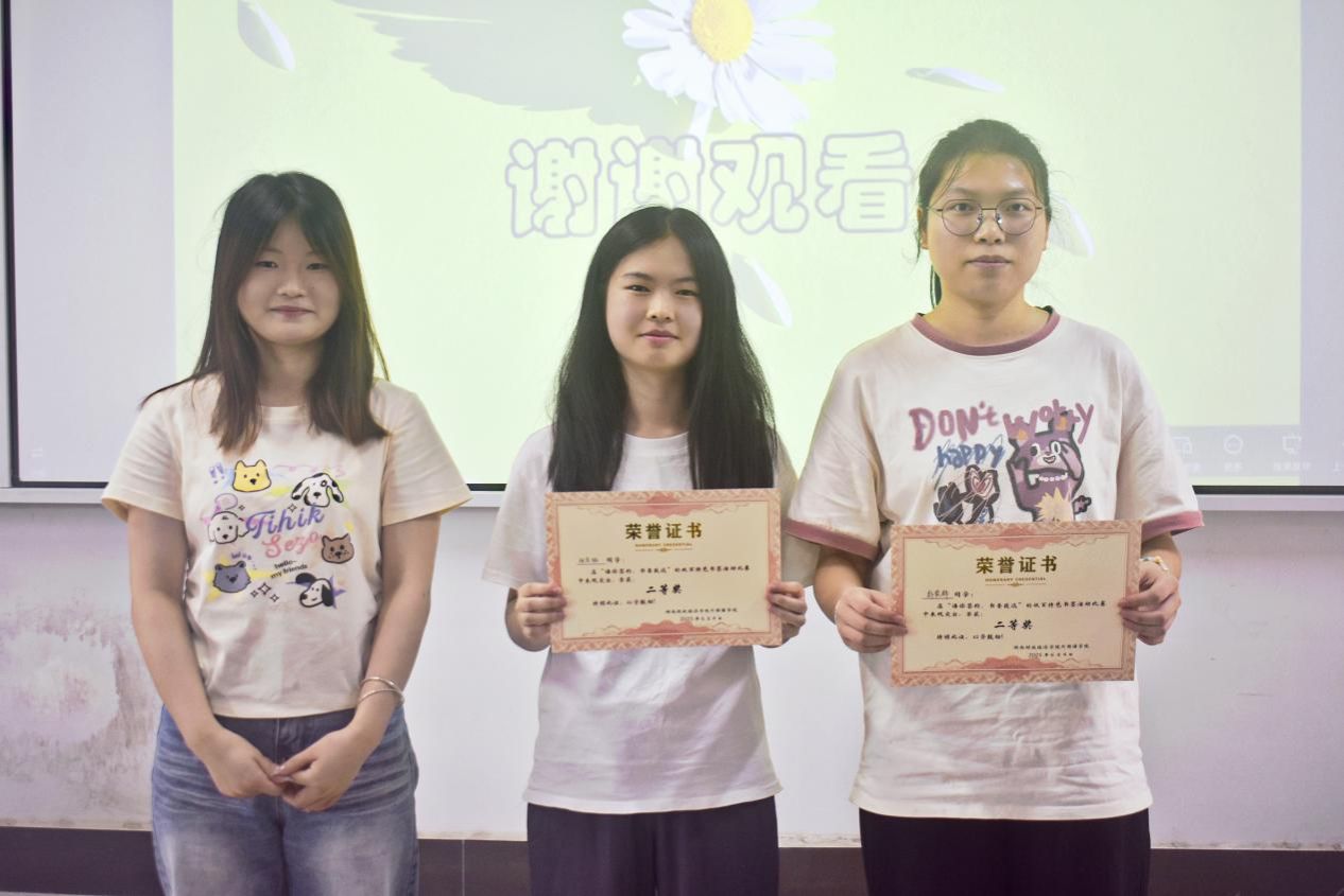 经过激烈的角逐与评委细致的评审,23级英语三班的谢文静、罗雅琪和23级翻译一班的卢而钦、马梓恒获一等奖,彭紫群、赵连英等人分获二、三等奖。随后由刘惠婷为以上获奖同学颁奖。