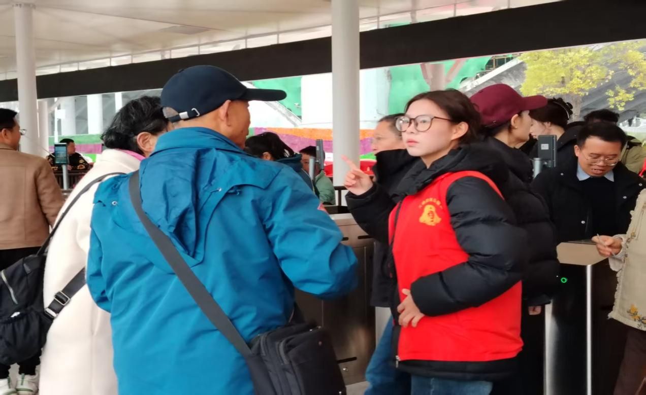 活动现场,志愿者们分工井然有序,各自坚守岗位。在景区入口处,他们化身为热情的向导,以诚挚的笑容迎接八方游客。面对初次到访、略显迷茫的游客,志愿者们耐心地一步步教会他们如何进行线上预约;对于游客提出的各类疑问,无论是景点位置、开放时间,还是周边交通、美食推荐,都一一予以详尽解答。见到携带大件行李、行动不便的游客,志愿者们更是主动上前,帮忙将行李妥善存放到指定区域,让游客能够轻松开启游玩之旅。