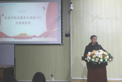 随后,范则周发表致辞。他肯定了一年来体育学院团学会在推动学院发展、服务师生方面所取得的显著成绩,并对新一届学生组织提出了殷切期望,希望他们能够继承优良传统,勇于创新,团结友爱,为学院的发展贡献智慧和力量。