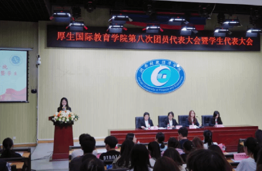 此次大会由厚生国际教育学院第七届团总支外联部部长余佳怡主持。在会议开始前,余佳怡介绍了出席本次大会的领导和嘉宾。其中包括厚生国际教育学院直属党支部书记肖平飞、国际合作与交流处处长傅佳、学工办负责人胡佩瑶、厚生国际教育学院团总支书记肖云鹏、第七届学生分会主席陈琳璐、夏雅琪、罗伊汎,以及第七届团总支副书记程夕宇。