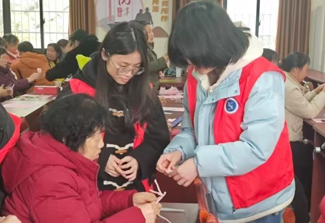 在此次活动中,社区内的老年群体在志愿者们的陪同下亲身参与手工创作金香花作品。传统的手工艺活动不仅弘扬了中华文化,也让社区居民在动手的过程中感受到了浓浓的节日氛围。活动开展期间,志愿者们细致地讲解每一个制作步骤,耐心地协助每一位老人完成制作,使整个活动充满了欢乐与温暖。