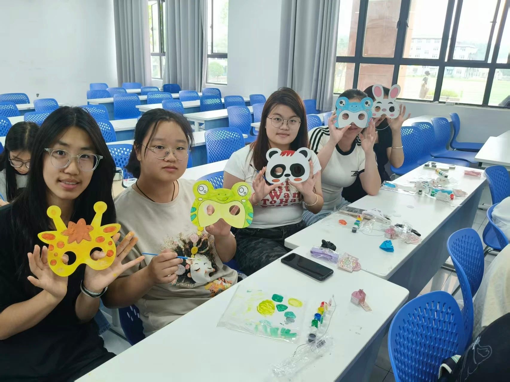 在“面具物语,笔落心声”心理健康主题活动中,同学们并通过面具涂鸦、笑脸墙共绘等艺术创作,探索内心世界。色彩与笔触成为表达自我、共鸣共情的桥梁,帮助大家直面情绪、打破心理防线,在艺术疗愈中接纳真实自我。
