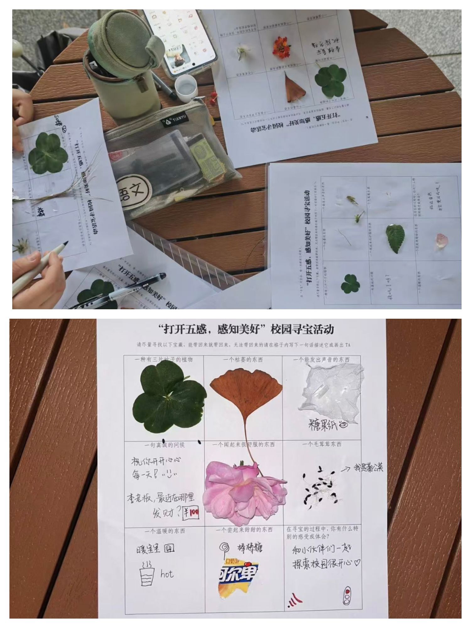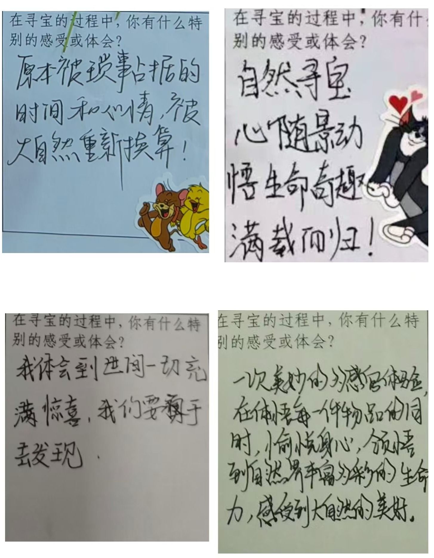 寻宝之旅覆盖视觉、嗅觉、味觉等多感官体验,在寻宝过程中,同学们细致地观察每一片树叶的轮廓,体悟每一件物品的温度,不仅提升了观察力和实践技能,也对周围的自然环境有了更深刻的认识。