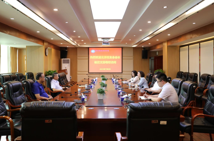 (本网讯)7月6日下午,北京校友会会长杨召文回访母校座谈会在学校办公楼715会议室举行。学校党委书记杨兰英、校长刘长庚、党委副书记苏玲及继续教育学院、就业创业中心(校友联络中心)主要负责人参加会议。