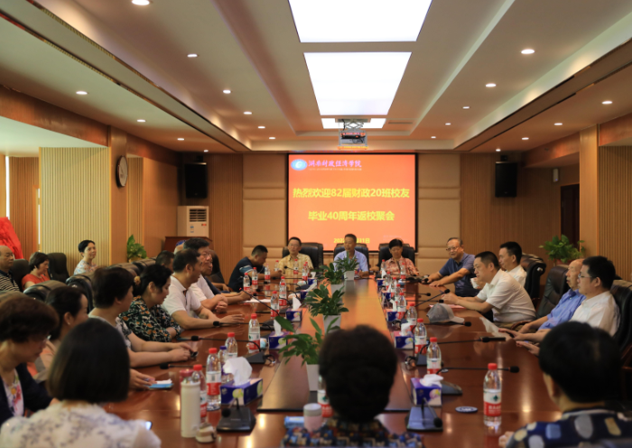 参观完校园后,校友们来到主校区办公楼715会议室,再度开展班会活动,共同回忆青春,感恩母校。班会由82届财政20班班长樊建军主持,校党委书记肖湘愚、校长刘长庚、党委副书记刘寒波以及刘畅鹏、刘世英等教师代表出席。