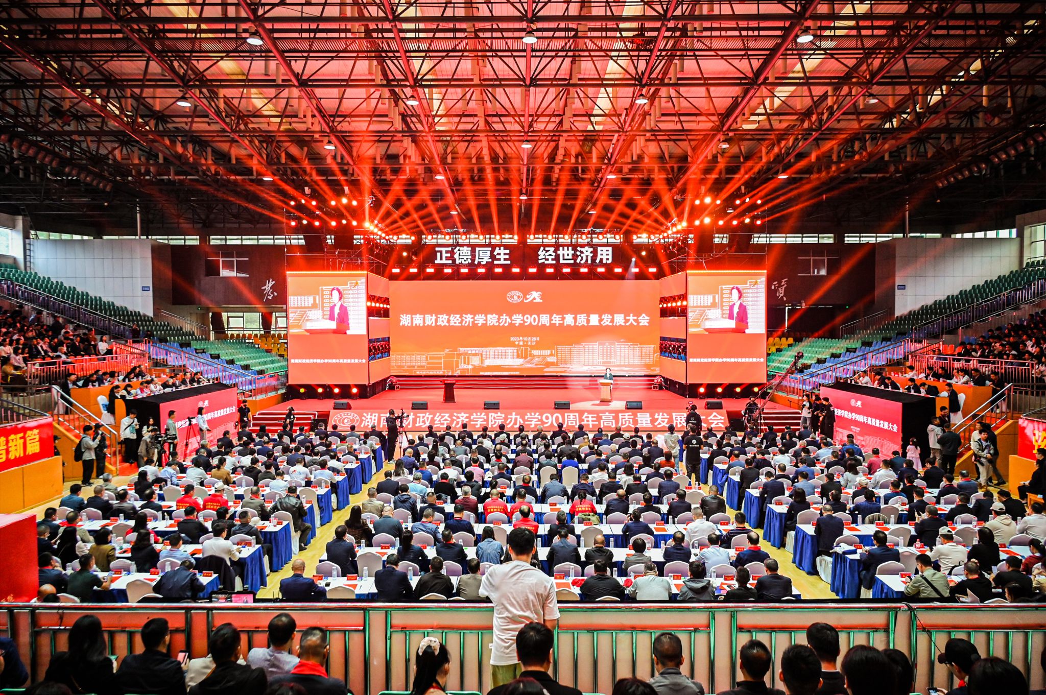 (本网讯)九十载倍道兼程,沐雨经霜;九十载渊源接续,薪火相传。10月28日,学校办学90周年高质量发展大会在主校区体育馆主馆隆重召开。